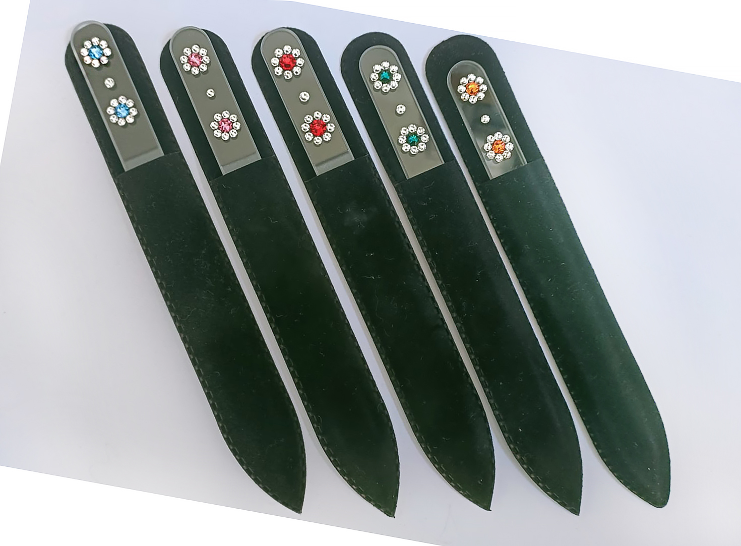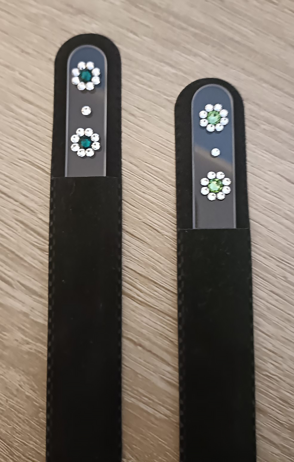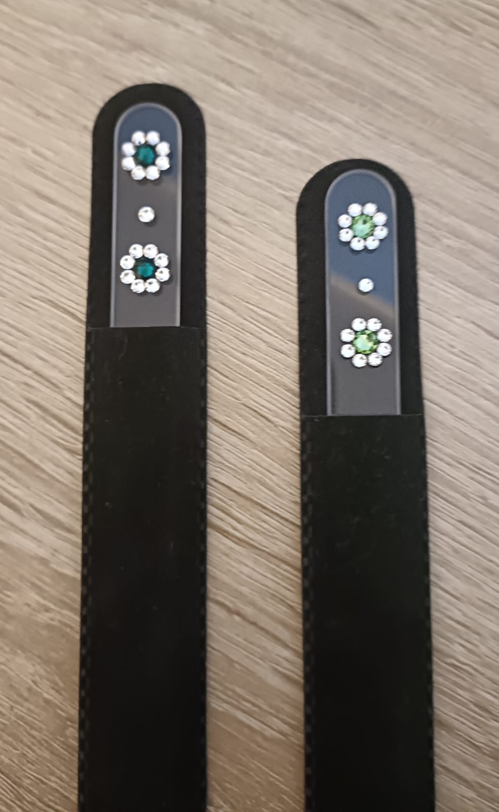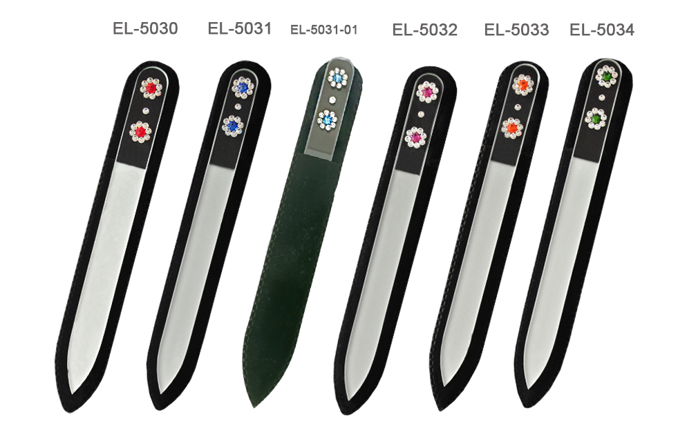 Pilnik do paznokci EL-5034 "Zielone Kwiaty" to piękny, wytrzymały kryształowy pilnik, zdobiony ręcznie Swarovski® crystals.