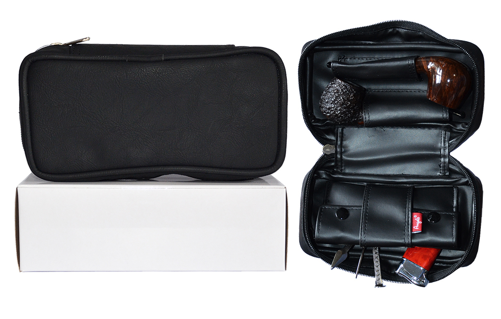Eleganckie etui z czarnej, matowej eko-skóry renomowanej marki Angelo (Niemcy). Wykonane z dbałością o szczegóły, idealnie sprawdzi się do bezpiecznego przechowywania i transportu fajek oraz akcesoriów.
