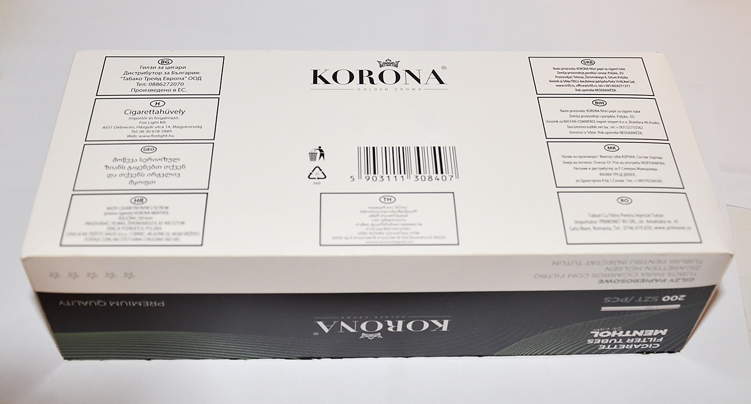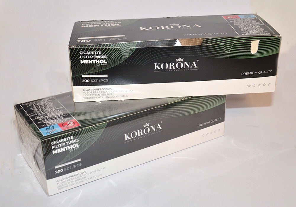 Gilzy papierosowe 004083 KORONA Menthol 8 mm, 200 szt./op. Wysokiej jakości gilzy papierosowe marki KORONA z filtrem mentolowym. Standardowa średnica 8 mm – pasują do większości maszynek do nabijania tytoniu. Delikatny, odświeżający aromat mentolu nadaje papierosom przyjemny smak i zapach.