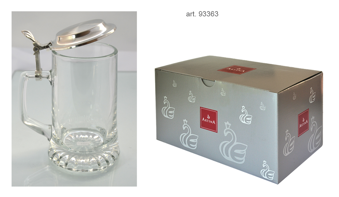 Kufel do piwa 93363 „Flachdeckel” – szkło z cynową klapką | ARTINA SKS